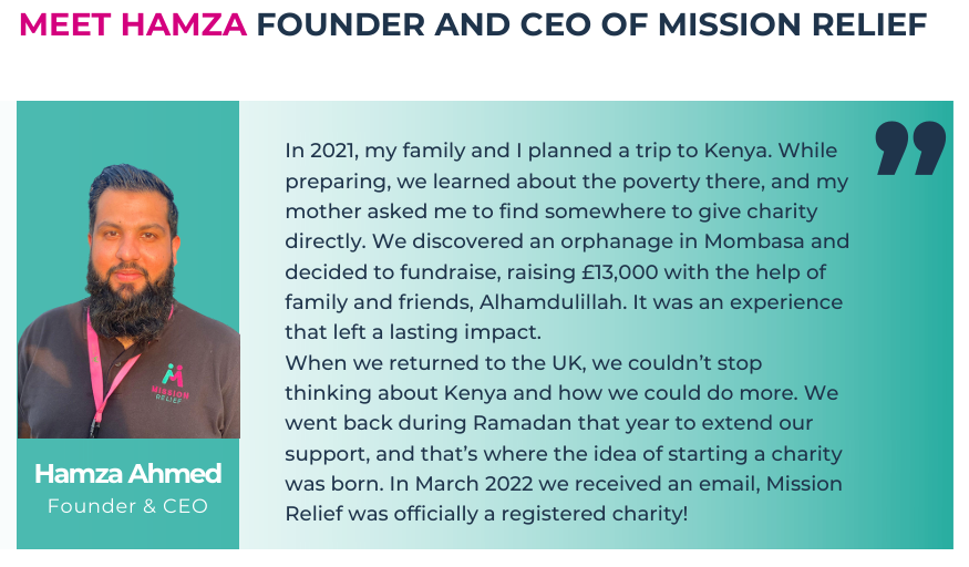 When Hamza approached me to get involved with Mission Relief, I saw it as exactly that, a blessing: a chance to help those less fortunate in a very direct and meaningful way. What drew me in was not just the mission, but the values — transparency, sincerity, and a team whose sole ambition is to make as big an impact as possible.